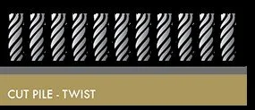 Cut pile twist is similar to cut pile plush in that the tops of the loops are removed to form an even surface. The use of taut, tightly twisted yarn gives the resultant carpet a crisp, more textured appearance. Signs of footsteps, tracking and shading are minimised by this durable, heavily textured style.